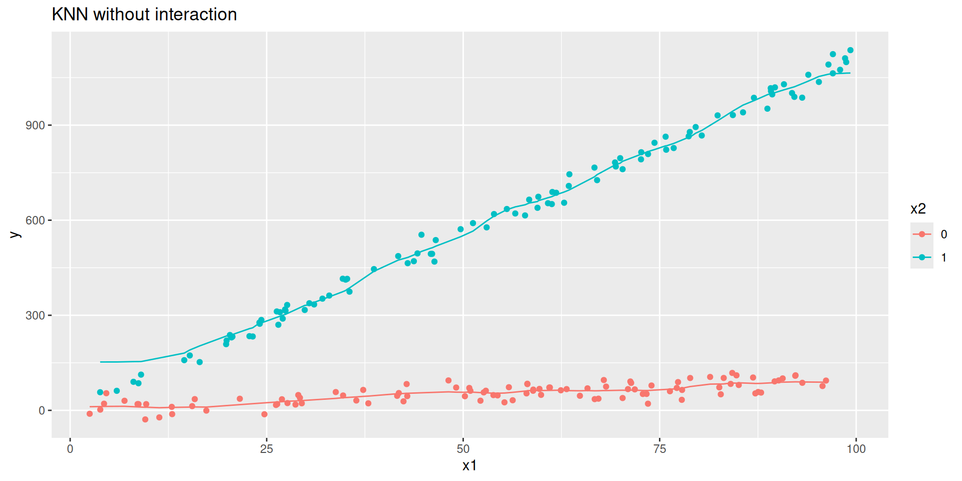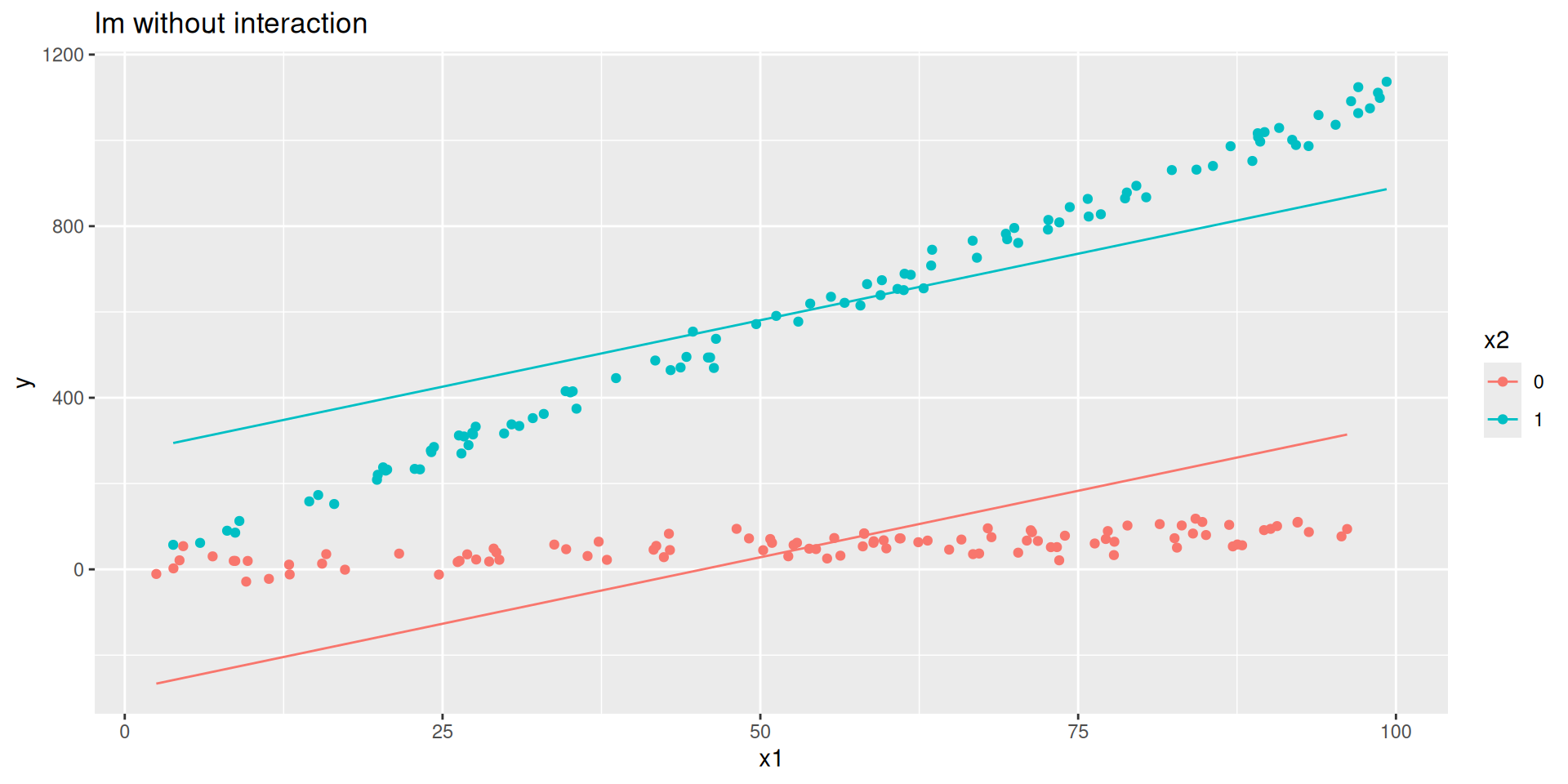 y = rnorm(n, 0 + 1*x1 + 10*x2 + 10* x1_x2, 20)) #DGP + noise