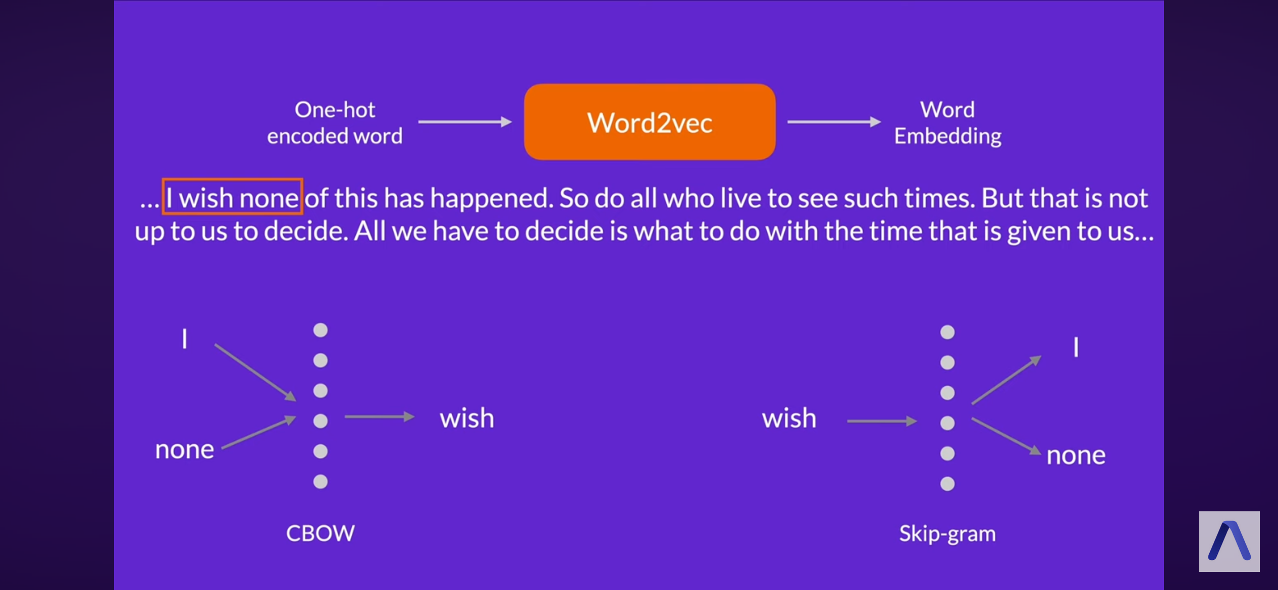 word2vec (google) for embeddings; see book appendix - skipgram - CBOW